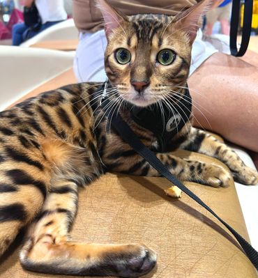 We are a small cattery, but a prideful one. We love Bengals and work to preserve the breed. The health and temperament of our Bengals is our main priority and we focus on quality, not quantity. Our cats and kittens are raised indoors in a clean, loving, family environment. We specialize in large rosettes and lots of glitter. Aside from the wild look of a Bengal, they are energetic, very smart, affectionate, and really curious . Behaving more like a dog than a cat in many ways. We strive to try and leash train our cats, and socialize them in public. Our goal is for all of our cats to be happy and healthy when they reach there new homes. There is nothing better then a social Bengal!